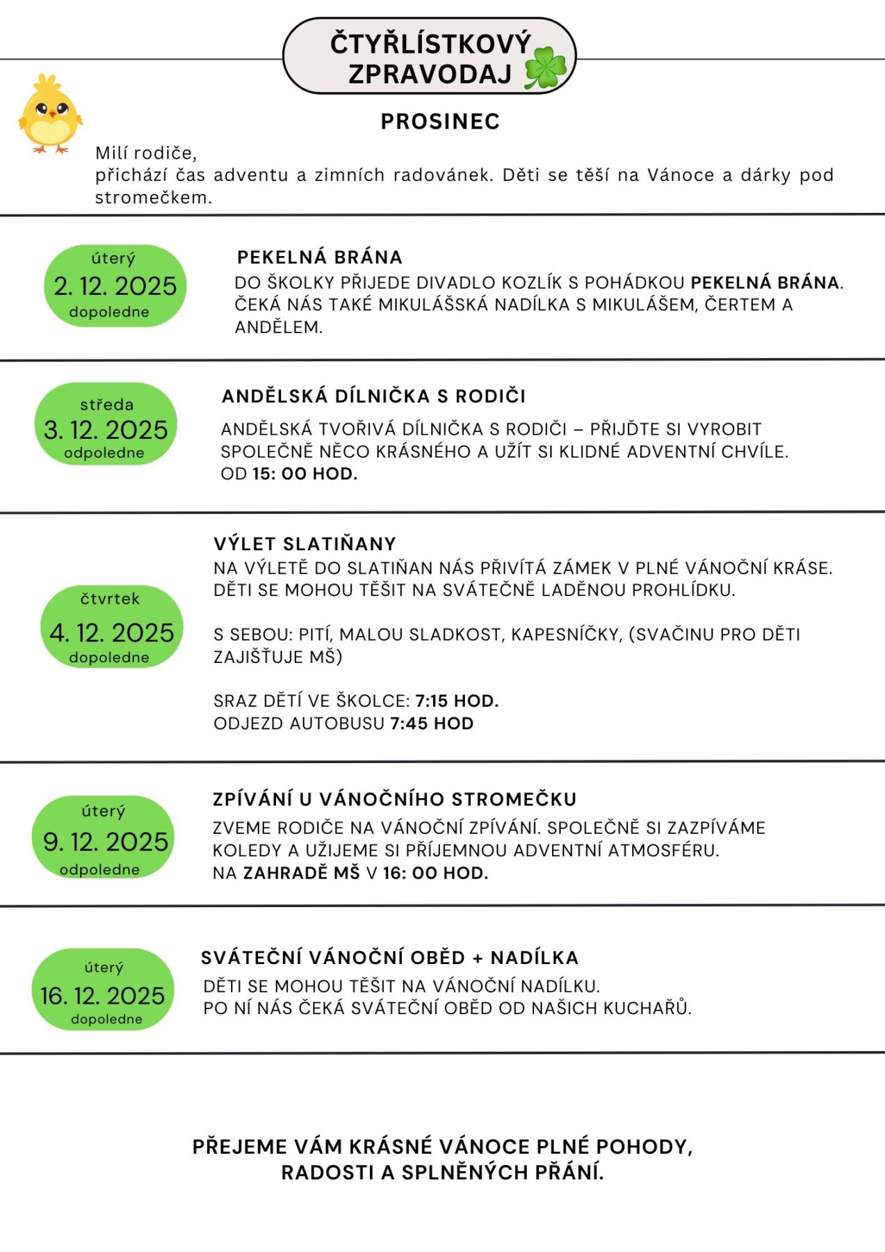 Zpravodaj PROSINEC – Kuřátka